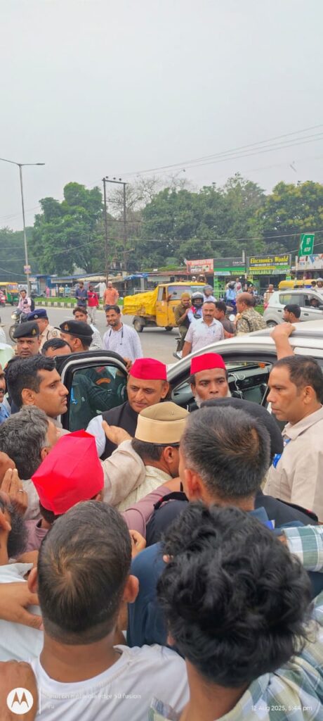 Ranchi— On Tuesday, former Uttar Pradesh Chief Minister and current Member of Parliament Akhilesh Yadav received a grand welcome in Irba while returning from Nemra, Ramgarh, after paying tribute to the late former Chief Minister and Rajya Sabha MP Dishom Guru Shibu Soren. The welcome programme was led by Imtiaz Ansari (Ohdar), State President of the Minority Cell of the Jharkhand Pradesh Samajwadi Party. A large crowd of local party workers, supporters, and villagers had gathered at Irba Bazaar Tand and along the main road. Samajwadi Party workers, wearing red caps, and the chants of “Jindabaad Akhilesh Yadav” filled the air with enthusiasm. As Akhilesh Yadav’s convoy reached Irba, people warmly greeted him with cheers. The administration ensured tight security, and the event was conducted peacefully. During the welcome, Akhilesh Yadav waved to the crowd and warmly interacted with local residents. Prominent social worker Abdul Sattar Ansari, along with several other dignitaries, was also present on the occasion.